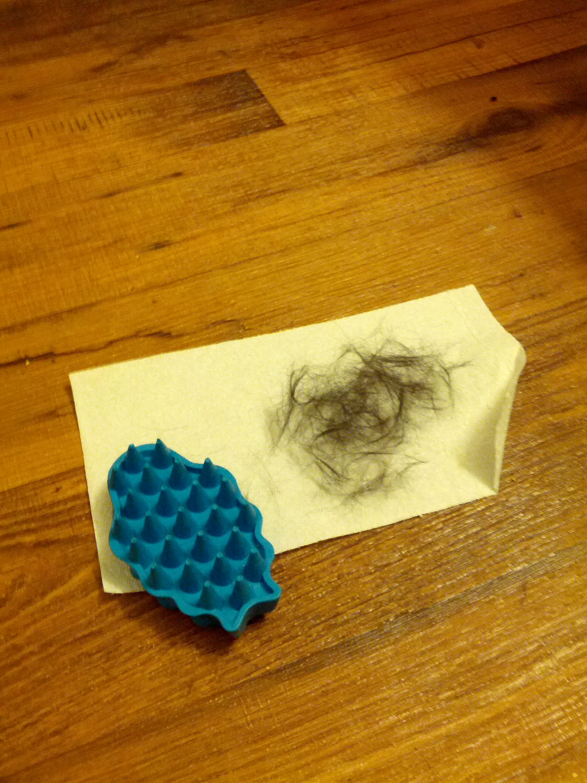 I grew up with a sheltie, so when it comes to grooming, I’m used to a pretty high-maintenence coat. We had a huge assortment of brushes for her undercoat and top coat. We had clippers to keep her hair from dragging on the floor, snow balling up on her feet, and mats forming behind her ears. Brushing her was a huge time commitment and always resulted in a mountain of fur.
