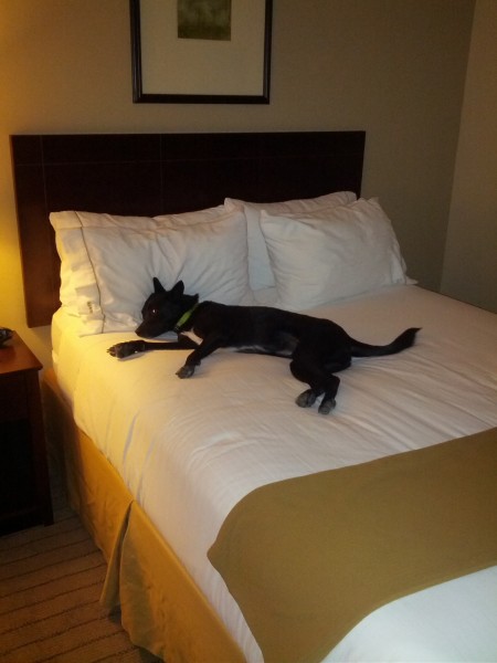 We arrived in Devils Lake on Friday night so that we would be able to get up early while the fish were (hopefully) biting. We stayed at the Holiday Inn Express that night, where Ava quickly settled in. In addition to their comfortable rooms, extended-hours hot tub, and early morning breakfasts, we were very thankful for their dog-friendly policies.