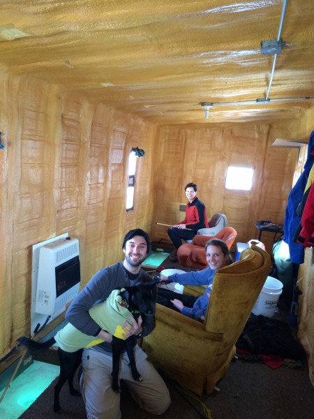 Ava liked to look down the holes and was especially interested in our bobbers. In typical Ava fashion, she spent a lot of time curled up next to the heater, but we would occasionally go outside to slip and slide around on the ice. Even with her sweater on, Ava would be ready to get back inside pretty quickly!