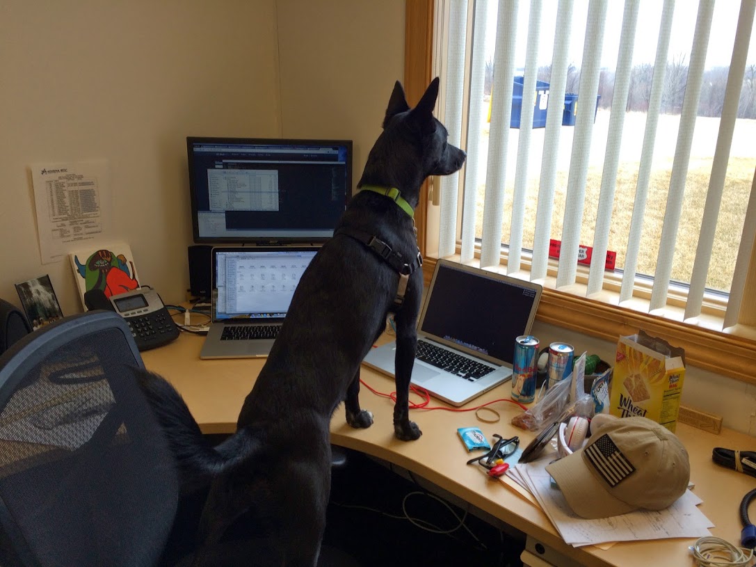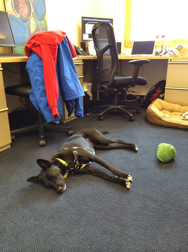 Unlike her hard-working owner, Ava liked to stare out the window and day dream. Probably about running through fields filled with peanut butter rabbits at temperatures above 60°.