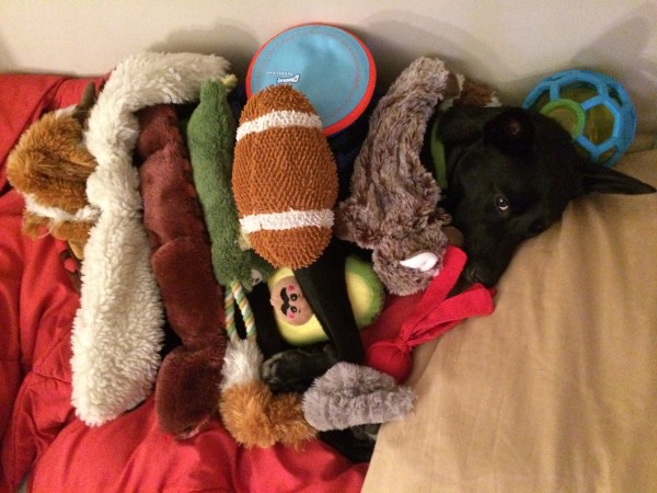 We had such a hard time getting Ava to play with toys initially.  Now that she LOVES play time, we have a hard time saying “no” to new toys.  She has more tug toys, frisbees, balls, and squeakers than she knows what to do with!