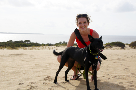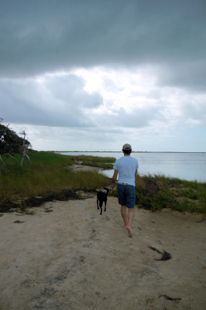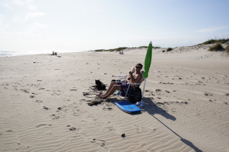 The sound-side beach at the campground was a little murky and fishy-smelling. There was also a row of tent-campers very close to the shore. We decided it would be more fun to go to the beach along the ocean. Because it was late in the season, the beaches were pretty quiet, or even empty. We were lucky to have sunny weather in the 80’s so we could sit out and enjoy ourselves all day long. Ava didn’t like to go into the surf, so she spent most of her vacation lounging on the beach or sniffing at washed-up crabs.
